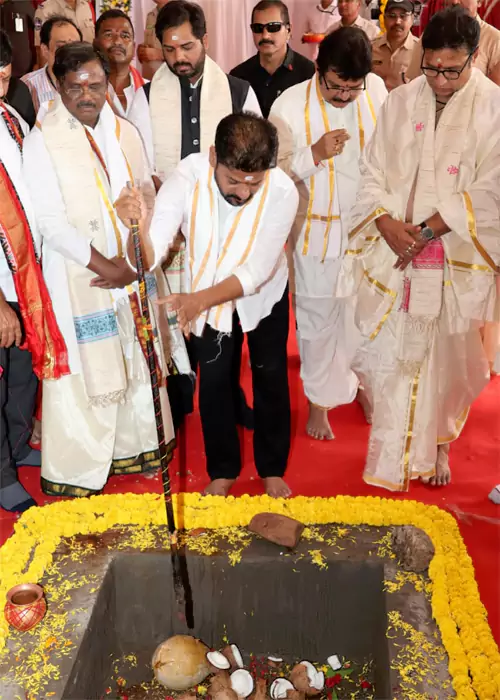 తెలంగాణ ముఖ్యమంత్రి రేవంత్ రెడ్డి నేడు జయశంకర్ భూపాలపల్లి జిల్లాలో సుడిగాలి పర్యటన చేపట్టారు. పర్యటనలో భాగంగా తొలుత కాళేశ్వరం చేరుకున్న సీఎం, అక్కడ కొలువై ఉన్న కాళేశ్వర ముక్తేశ్వర స్వామిని దర్శించుకుని ప్రత్యేక పూజలు నిర్వహించారు. భక్తులకు మెరుగైన వసతులు కల్పించేలా ఏకంగా 198 కోట్ల రూపాయల వ్యయంతో చేపట్టనున్న ఆలయ అభివృద్ధి పనులకు రేవంత్ రెడ్డి భూమిపూజ చేశారు.